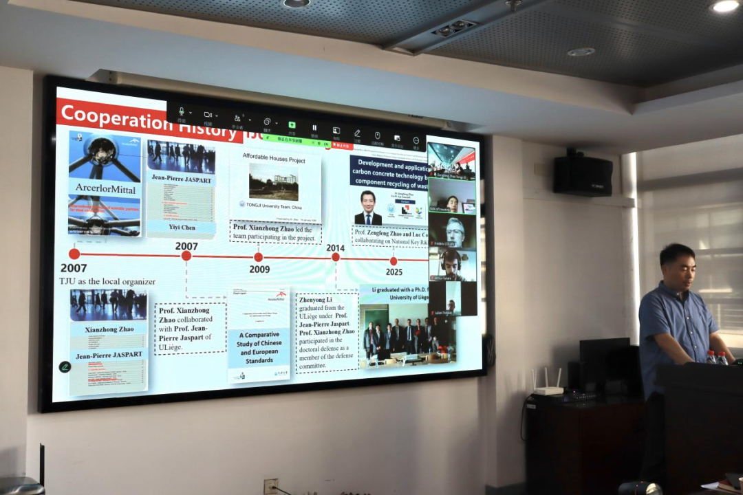 同济大学土木工程学院副院长潘钻峰发表讲话,首先介绍了同济大学土木工程学院的师生、国际合作等基本情况。同济大学与列日大学的合作始于2007年,本项目作为同济大学与比利时列日大学,获批的第一个国家重点研发计划“政府间国际科技创新合作”重点专项项目。该项目的开展是双方以往合作研究的延续与深化,希望能够建立中比两国的科技合作典范。