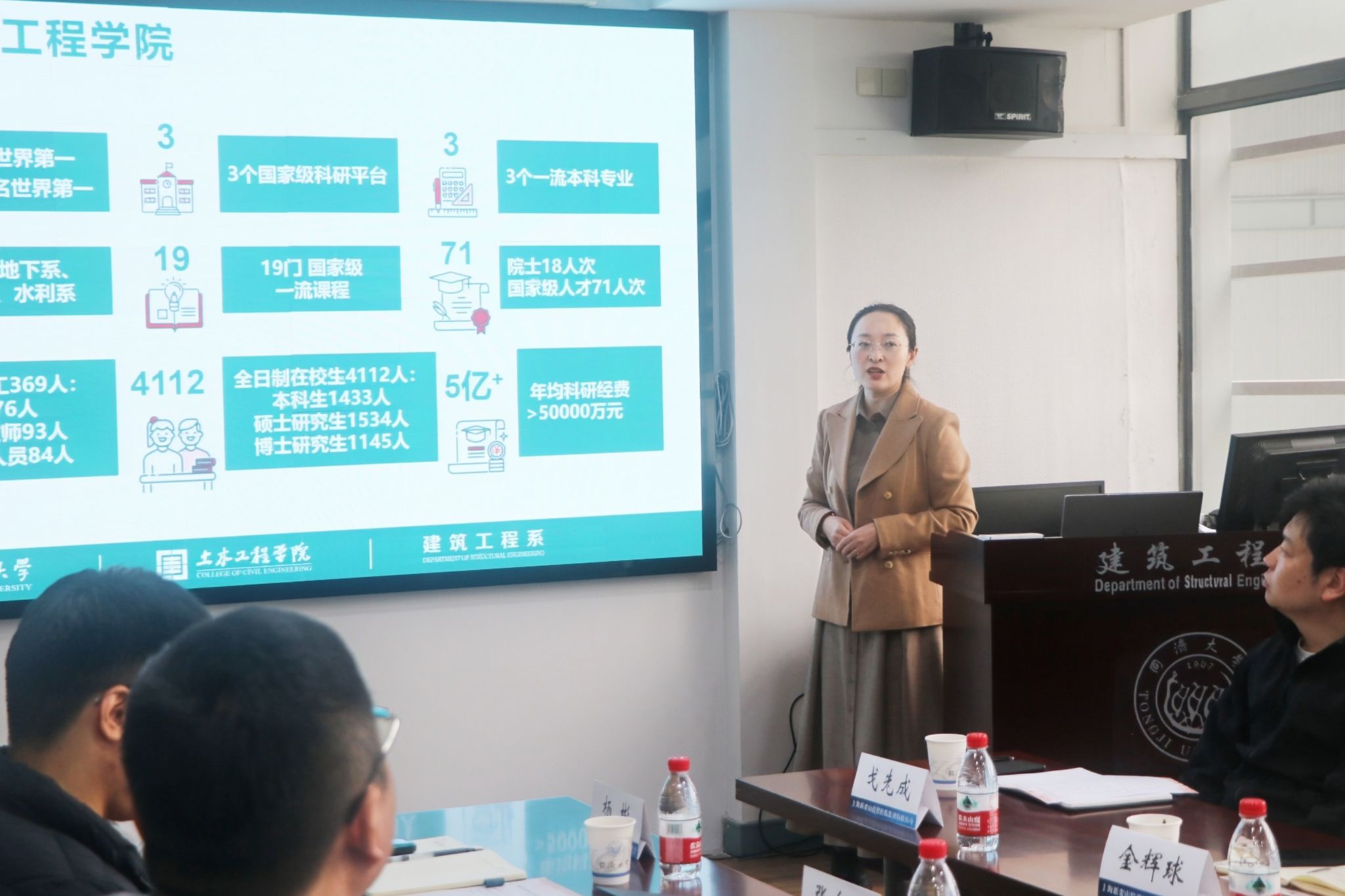 座谈会伊始,同济大学建筑结构试验室主任强旭红教授详细介绍了建筑工程系的学科建设、科研实力、人才培养体系及核心研究方向,全面展现了建筑工程系在土木工程领域的深厚积淀与领先优势。