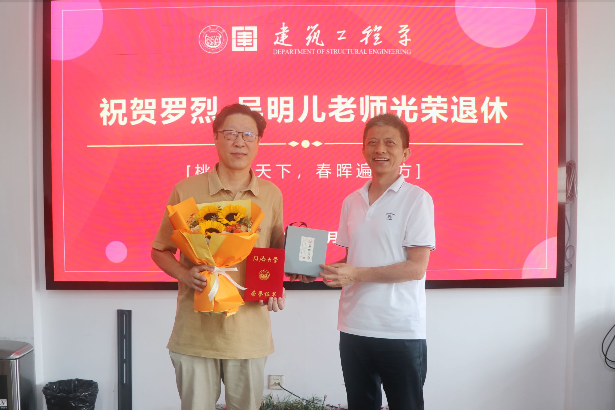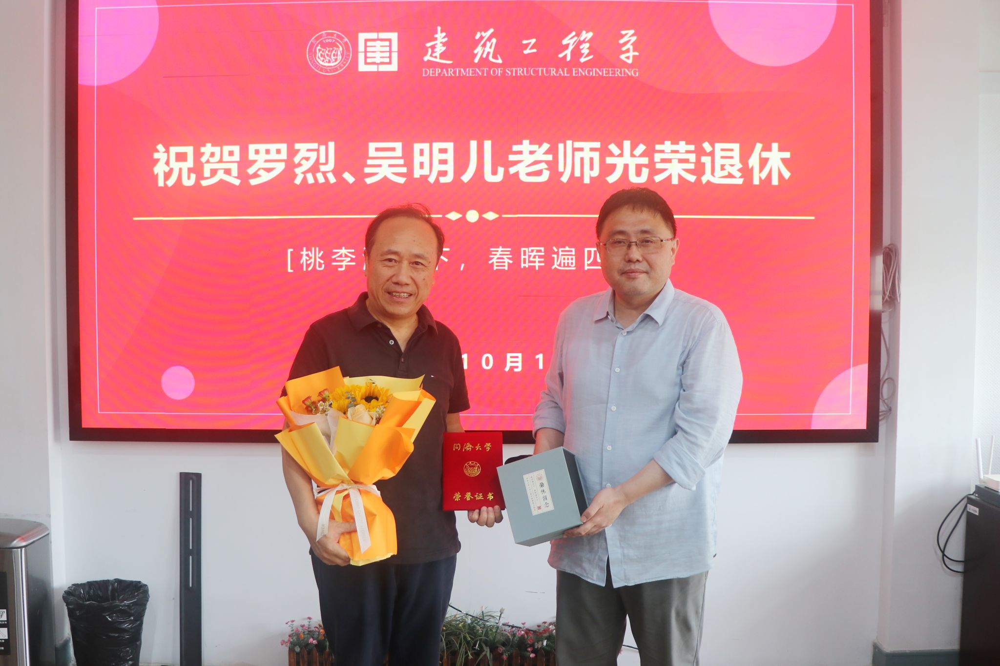 退休不是终点,而是人生另一段华章的开启。建筑工程系衷心祝愿两位老师安康长乐,诸事顺意,在人生的新程中收获更多的幸福与精彩。