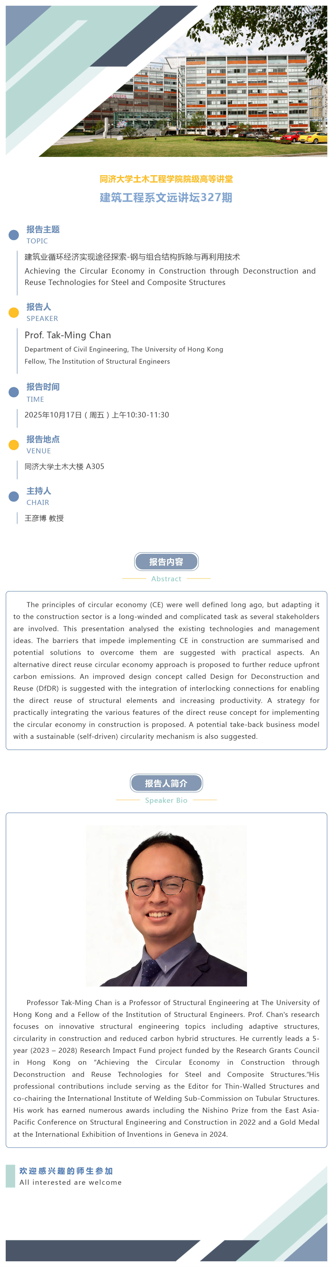 [文远讲坛327期]Tak-Ming Chan | 建筑业循环经济实现途径探索-钢与组合结构拆除与再利用技术
