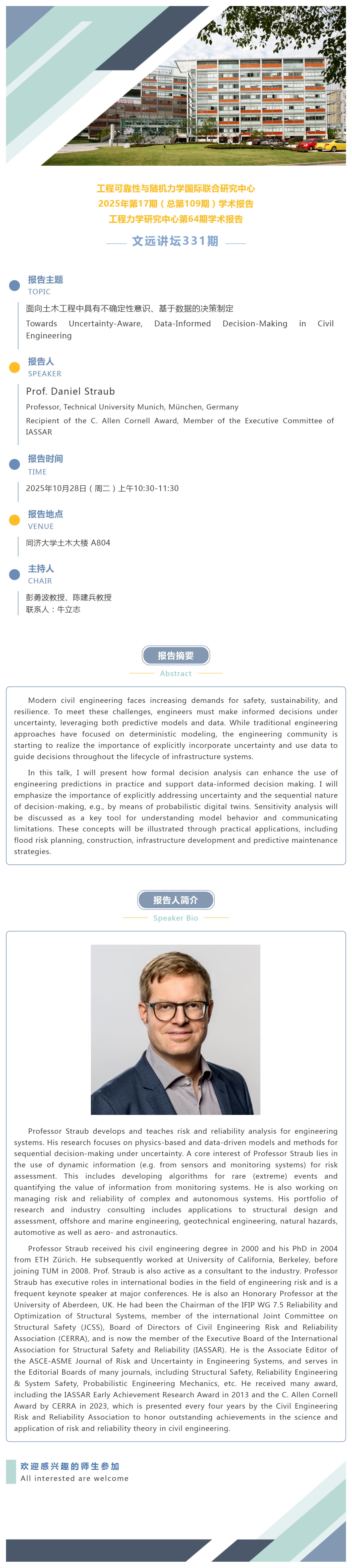 [文远讲坛331期]Daniel Straub | 面向土木工程中具有不确定性意识、基于数据的决策制定